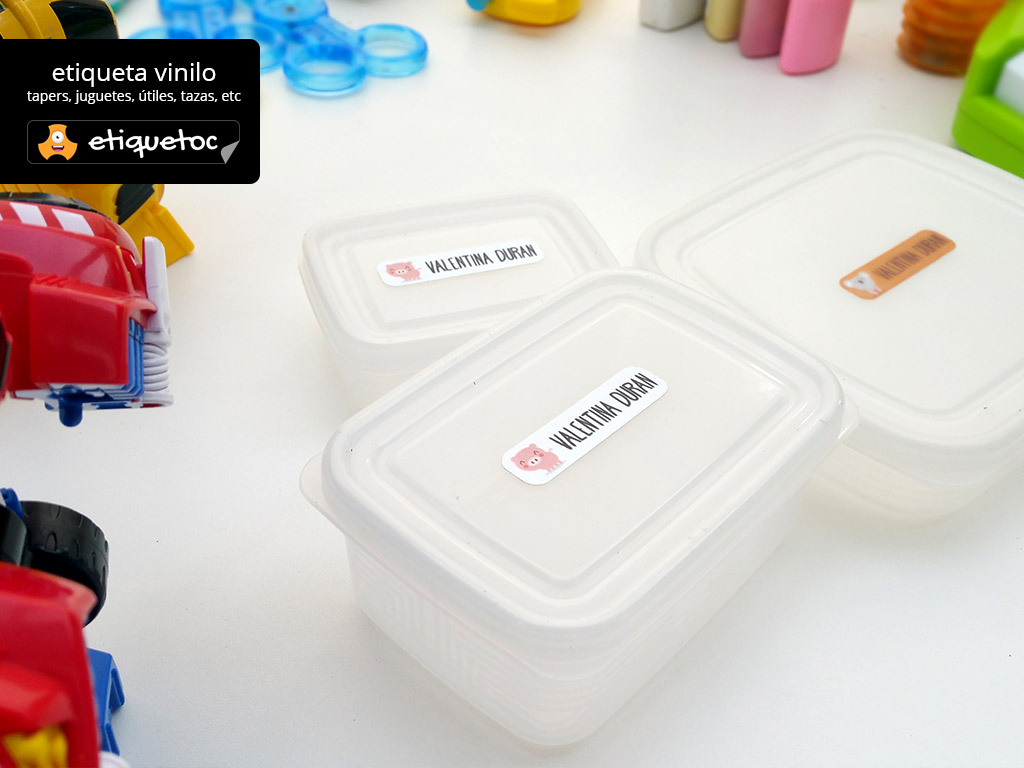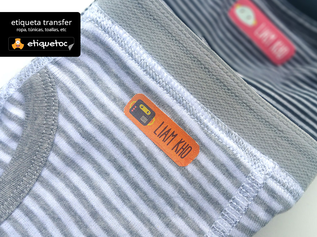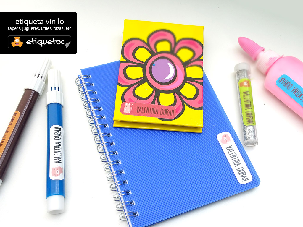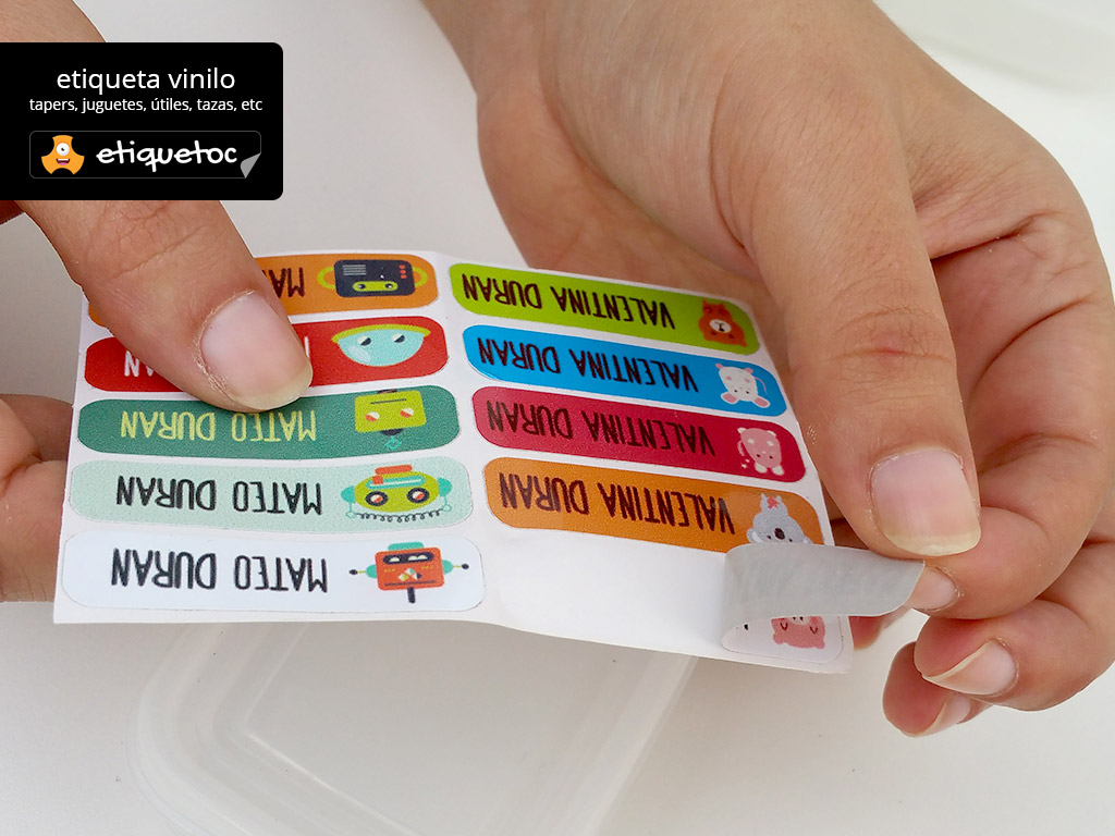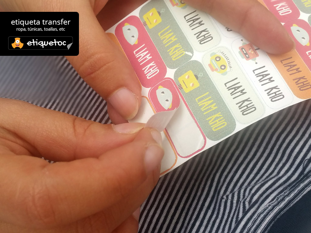 Las etiquetas son de dos tipos, vinílicas para en útiles escolares, tapers, cuadernos, etc y transferibles para utilizar en ropa, delantales, bolsos, etc.